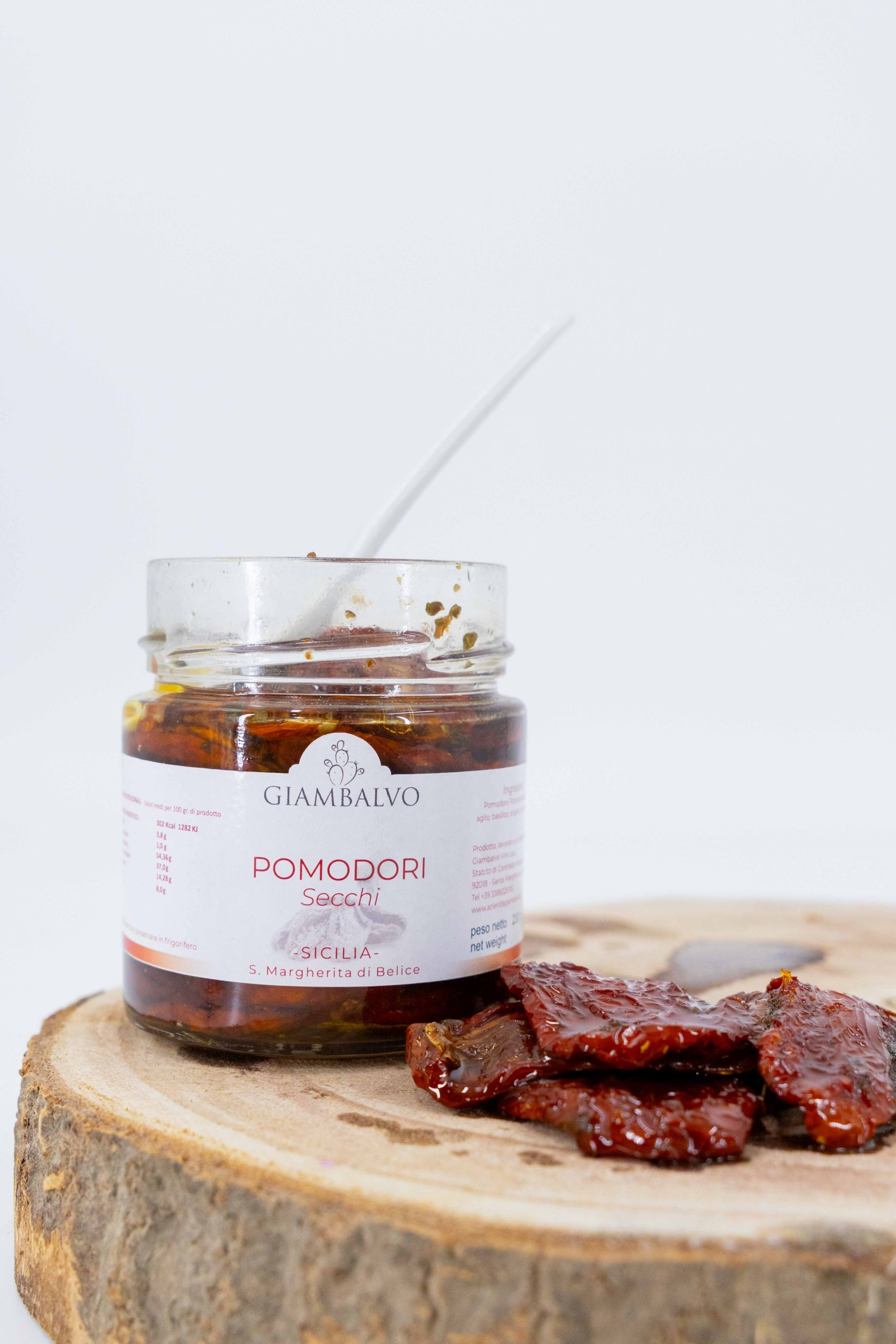 Ingredienti: Pomodoro pizzutello essiccato; aglio; basilico; origano; sale; olio EVO; pepe e peperoncino (senza glutine)